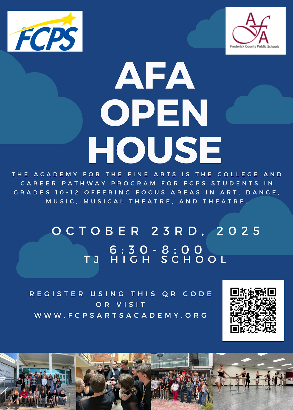 The Academy for the Fine Arts will be holding its Open House on Thursday October 23rd from 6:30-8:00pm. This is the same evening as the CTC Open House so hopefully students that are interested in both can see both programs on the same evening. |